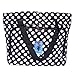 This large and roomy beach bag features a white polka dot pattern on a black background. A plastic lined large front zipper pocket is perfect for wet swimsuits or storing sunscreen. The inside of this canvas bag is water resistant plastic lining that easily wipes clean. Two durable nylon straps allows this large beach bag to be worn on the shoulder. Main Color: White, Black Material: Canvas, Nylon Measures: 18.5"w x 13"h x 5.5"d Weight: 11.6 oz Read more