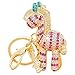So irresistible and cute! This majestic horse will adorn your handbag purse or keys for all to see. Covered with purple and pink crystals and turquoise ears for extra bling. Full mane and a dainty tail accentuates each curve, while the little legs stand upright for a full figured horse. Gold tone metal sets the backdrop for a perfect shimmer. Don't let your satchel be without this charming key fob. Additional keyring works flawlessly as a keychain.